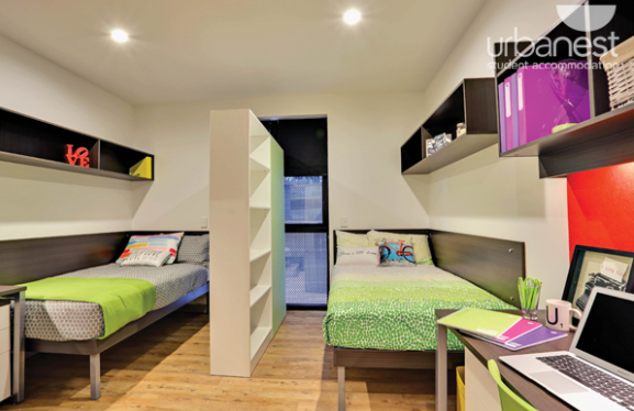 公寓为学生提供单人独立房、双人独立房、和4/5/6人共用厨房的单人套间。还配备有免费健身房、娱乐室、BBQ庭院、免费iMAC网络室、电影放映室等。内部装修现代豪华,设施齐全,让你拥有极佳的居住体验。